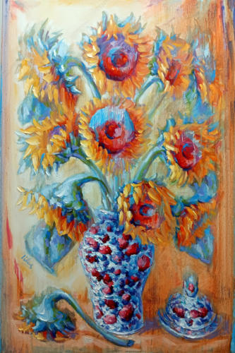 sunflowers are the central theme. Through his artwork, he shares his vision and